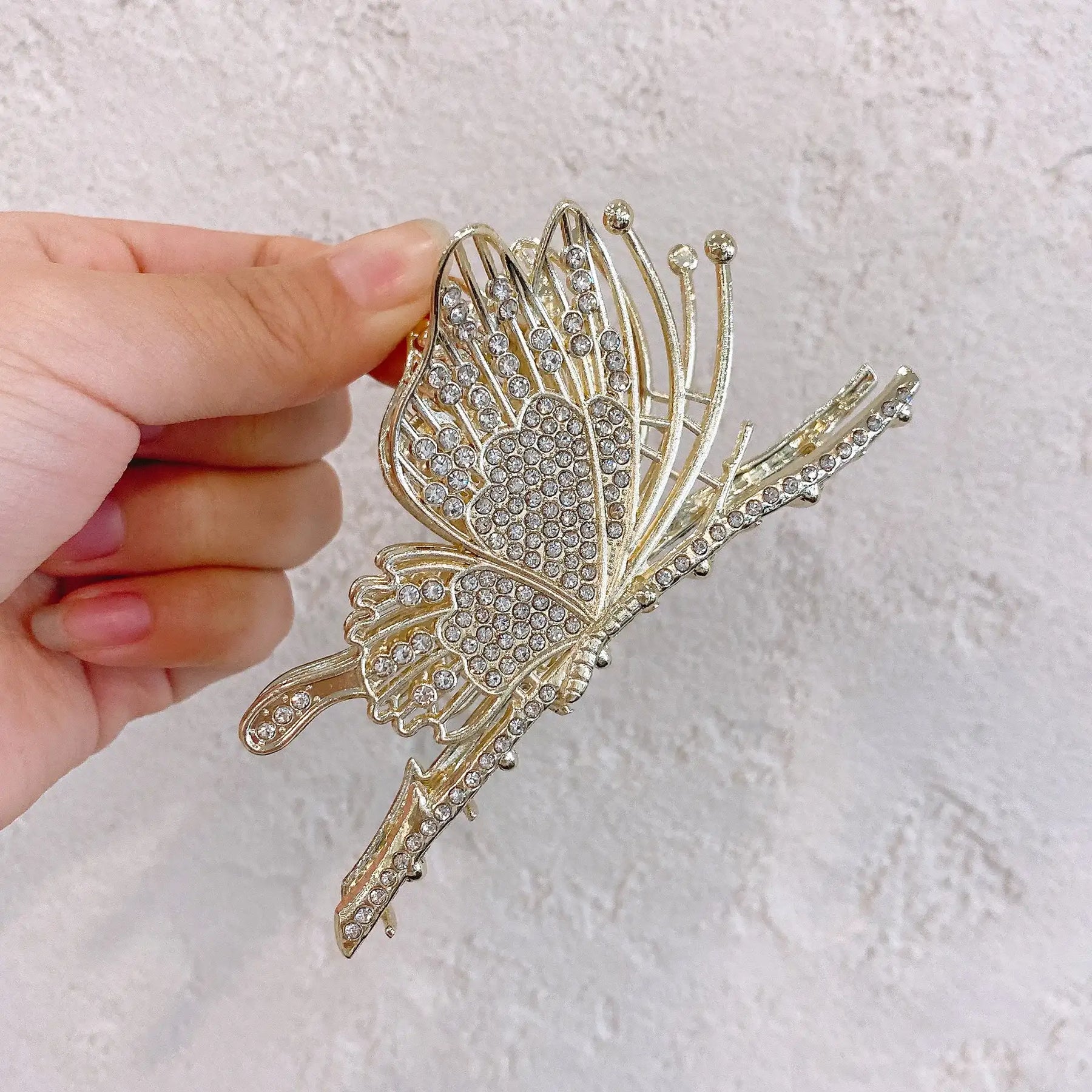 Ajoutez une touche féerique à votre coiffure avec la pince à cheveux papillon grande taille. Son design élégant et sa fixation forte type “shark clip” maintiennent parfaitement les cheveux, même épais, sans tirer ni glisser.